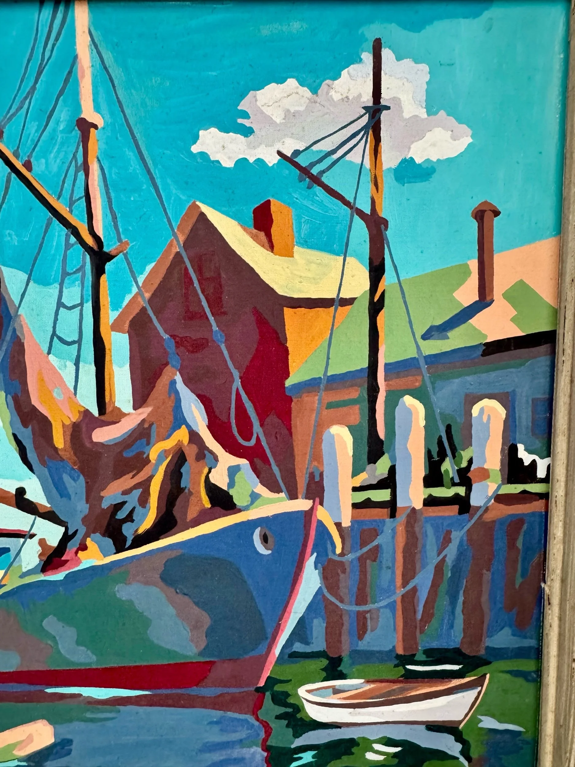 Large Mid Century Harbor Scene Paint-by-Number (27x21)