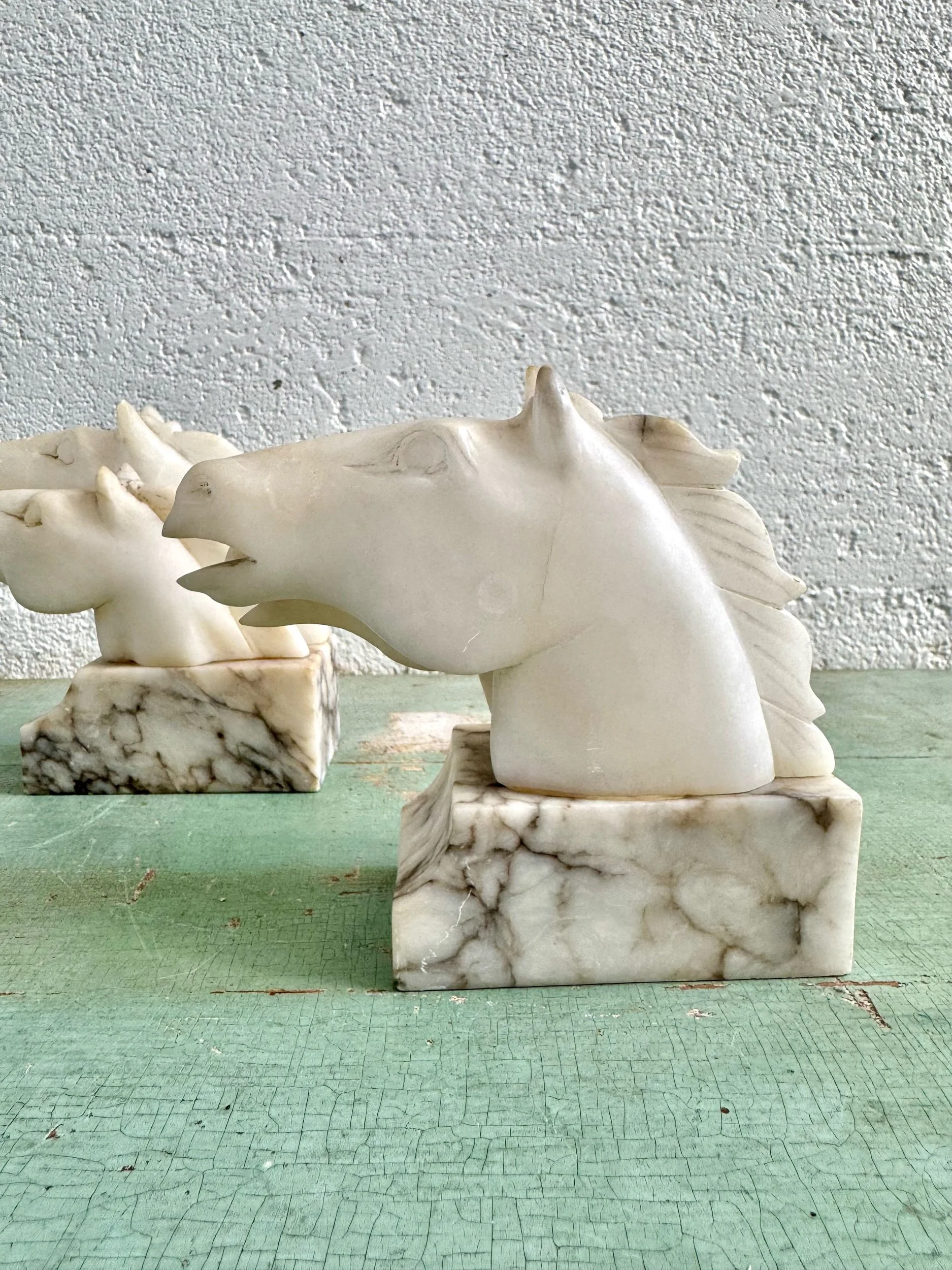 Handcarved Alabaster + Marble Horse Bookends (Italy)