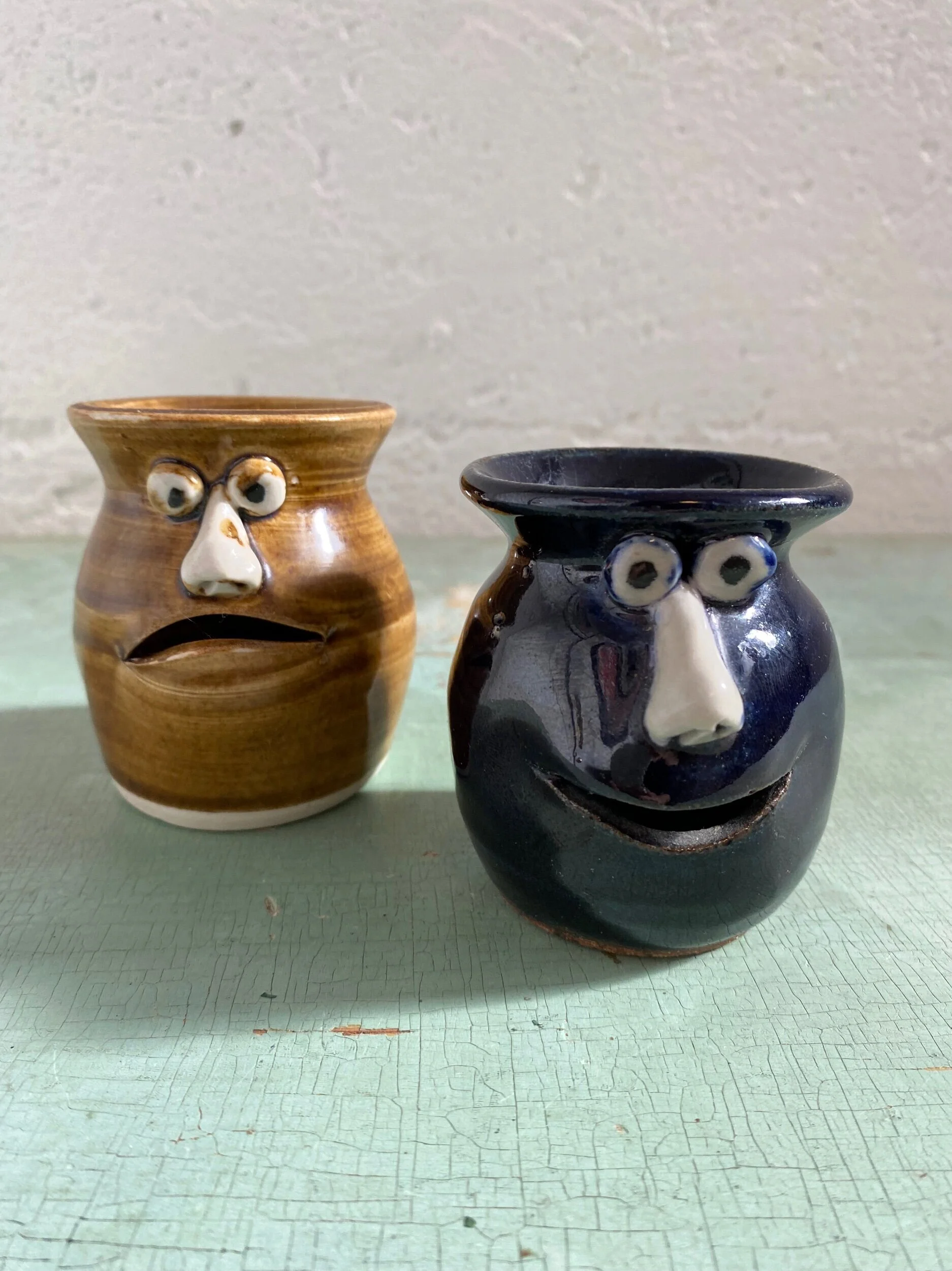 Easily separate the yolk from the whites with a cute hand-made pottery piece in the shape of a face. Fun, functional, and decor-worthy all at once! One light brown and one deep blue. Price includes one piece.