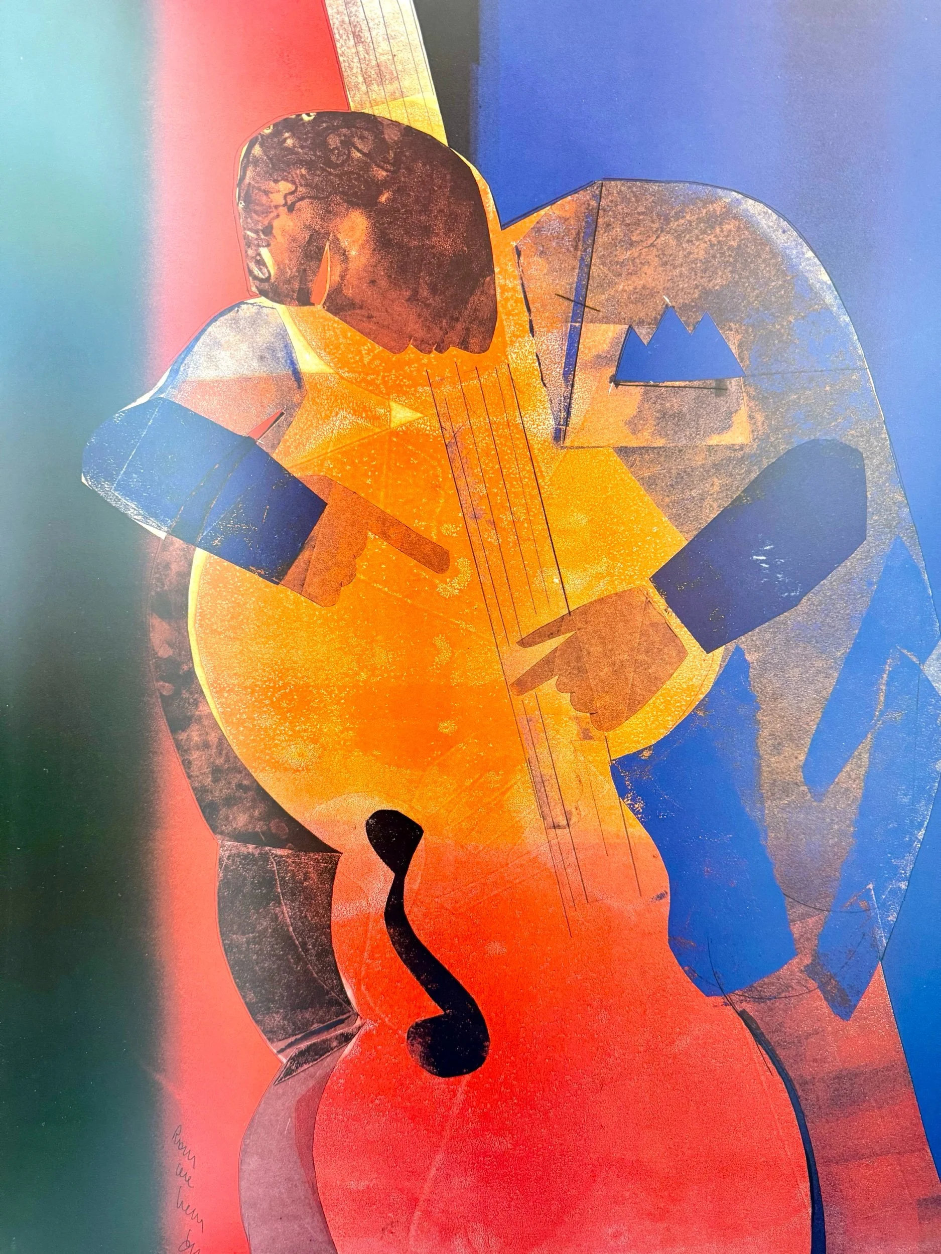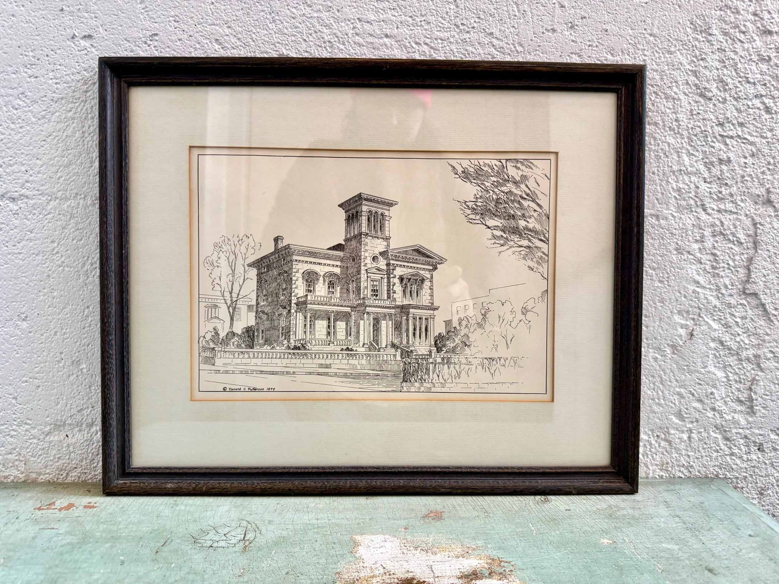 The sweetest needlepoint in a wooden yellow frame. Handmade and custom-framed, dated 1981. Excellent condition.