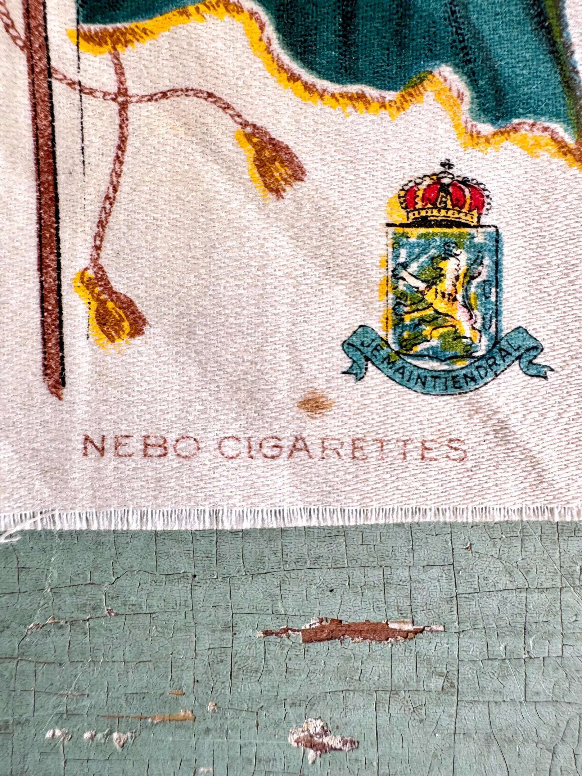 Early 20th century tobacco silk featuring the Irish flag. These would have come with a tobacco or cigarette purchase, in this case from Nebo Cigarettes, and were highly collectible. Would look great framed!