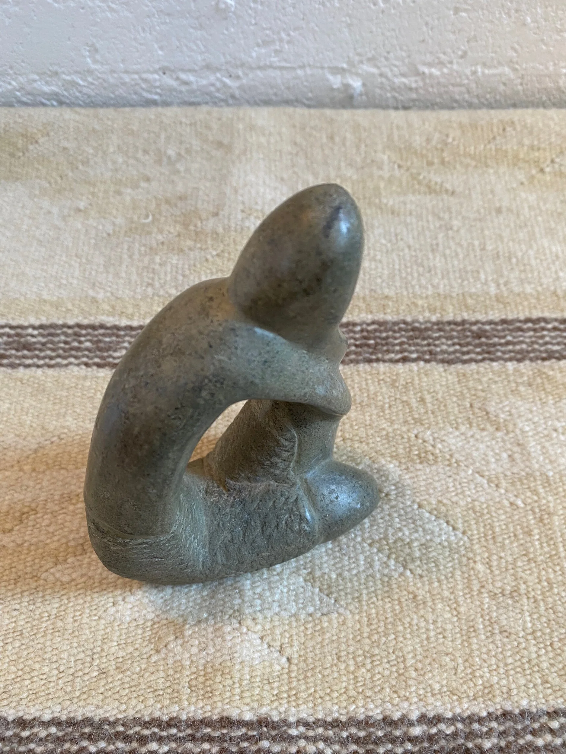 Choose from two gorgeous soapstone sculptures: the small piece depicts a person, with their head in their hand, as if in thought and the larger piece depicts two humans in what appears to be an embrace. Both pieces are in excellent vintage, with no apparent chips or cracks. Price includes one item.