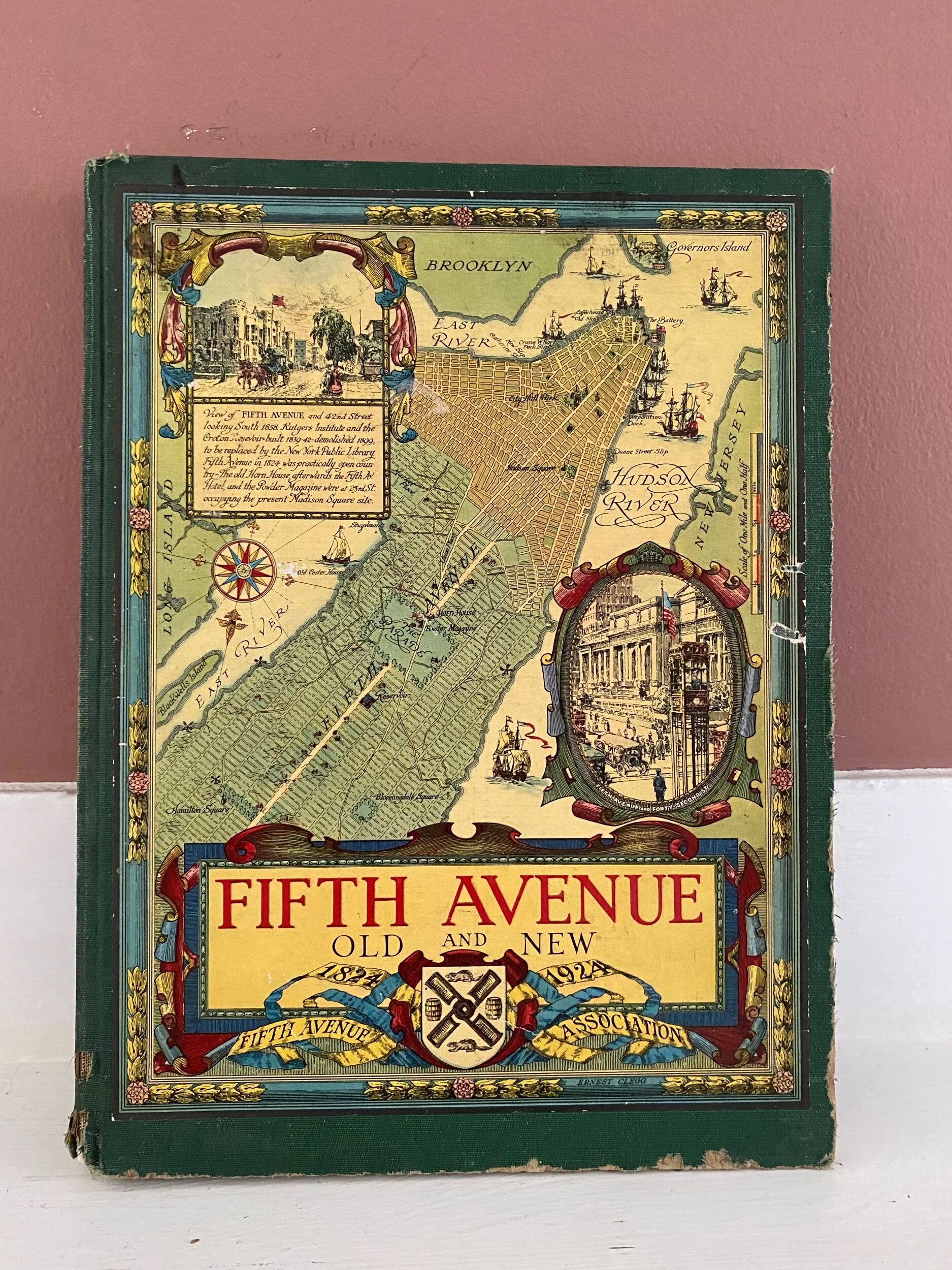 As former NYC-ers, this nearly 100-year-old book detailing the evolution of 5th Avenue is tough to part with! Really nice (and fascinating) black and white and color illustrations and detailed historical information. It looks like it was damaged by water at one point, as pictured, but it’s still such a gem (and less-damaged copies are going for $125+).