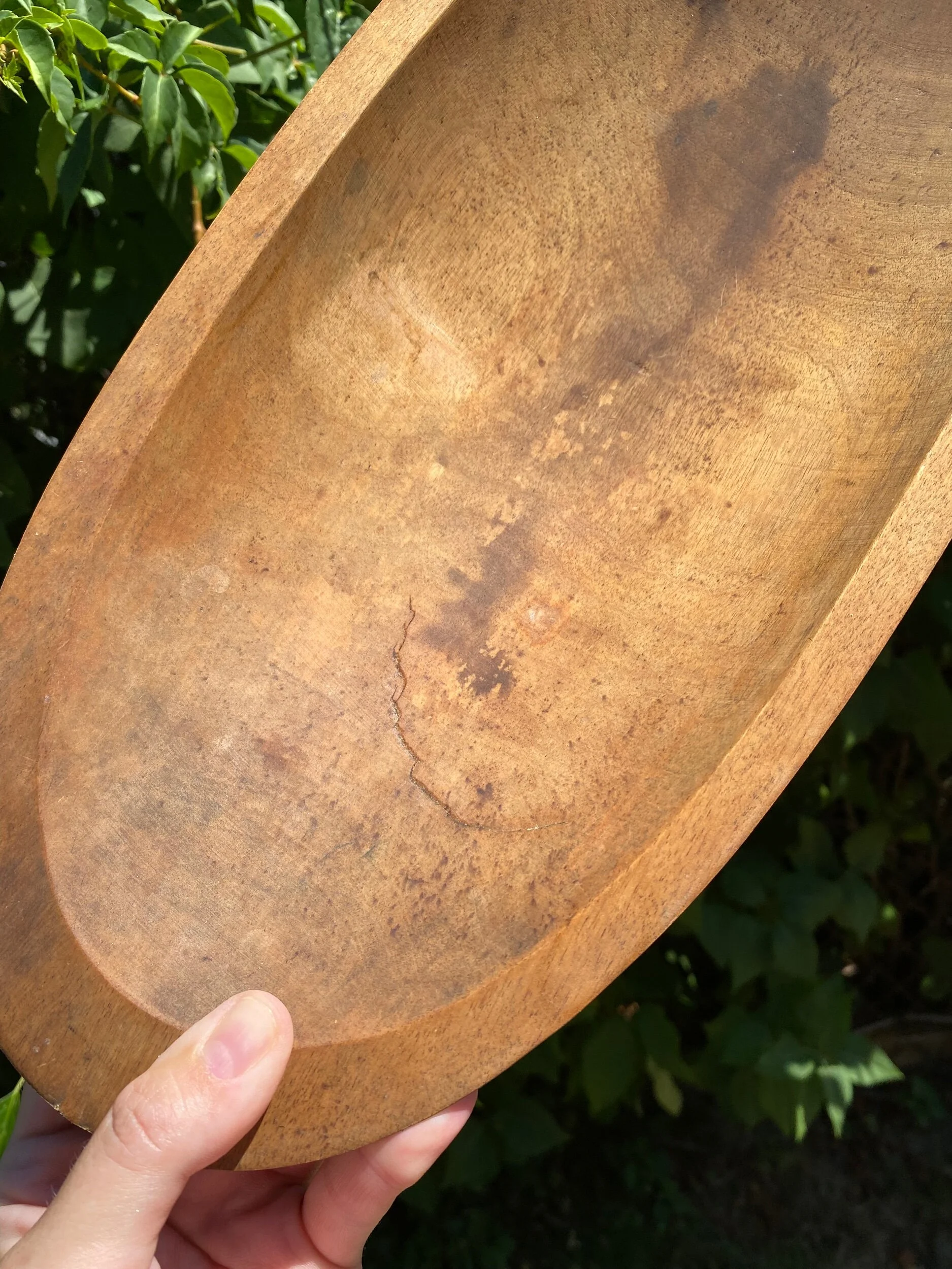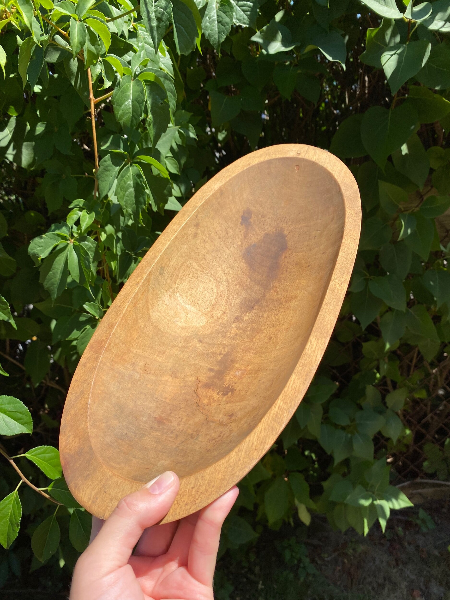 Stunning hand-turned wood bowl. Oblong shape with the most beautiful age spots- sigh.