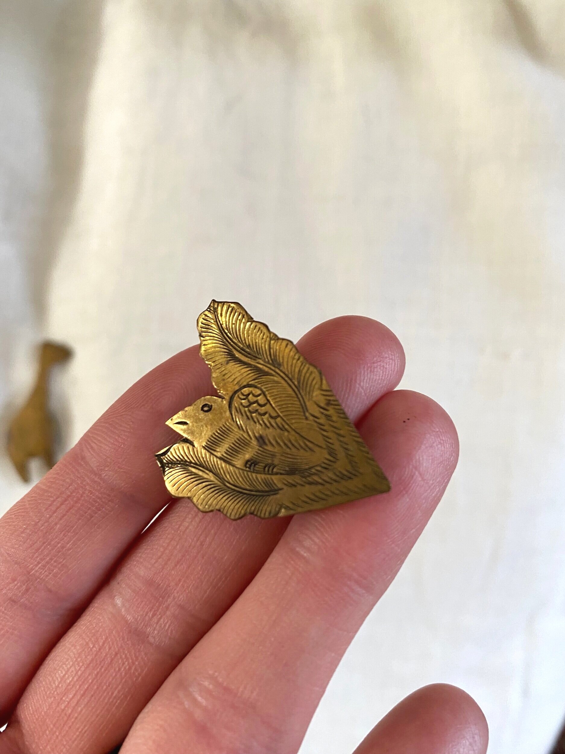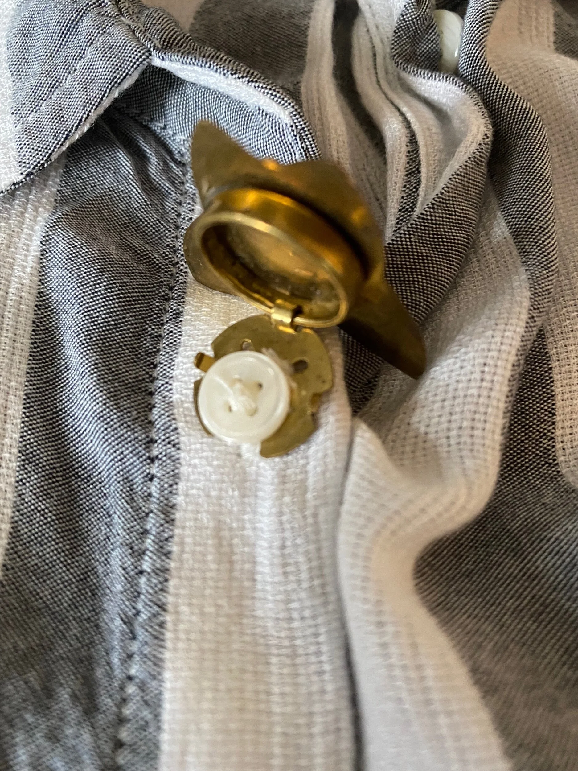 Looking for a cool and unique accessory that no one else has? You’ve found it! These sweet engraved brass button covers come in the shape of a turtle, giraffe, butterfly, dove, and a chicken. The animals vary in size from roughly 1” to 2.” The button cover itself is roughly half an inch in diameter and would fit a standard button (like on a button-down shirt). Price includes one button cover.