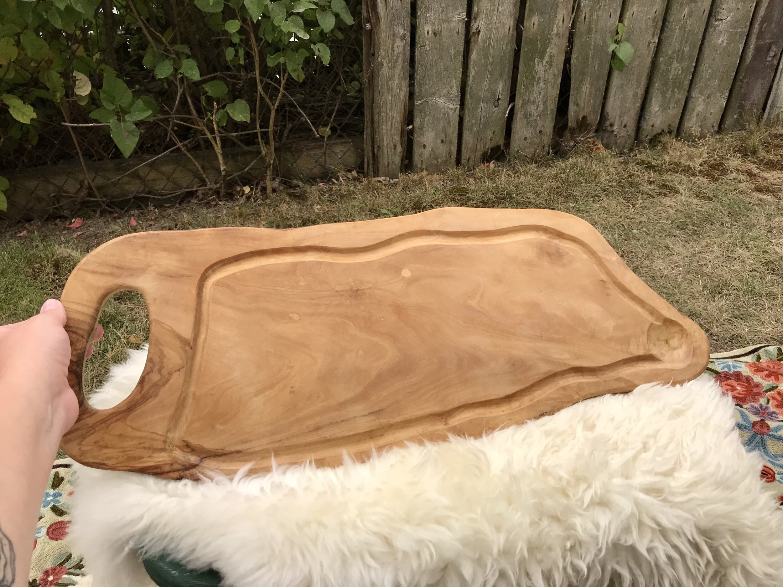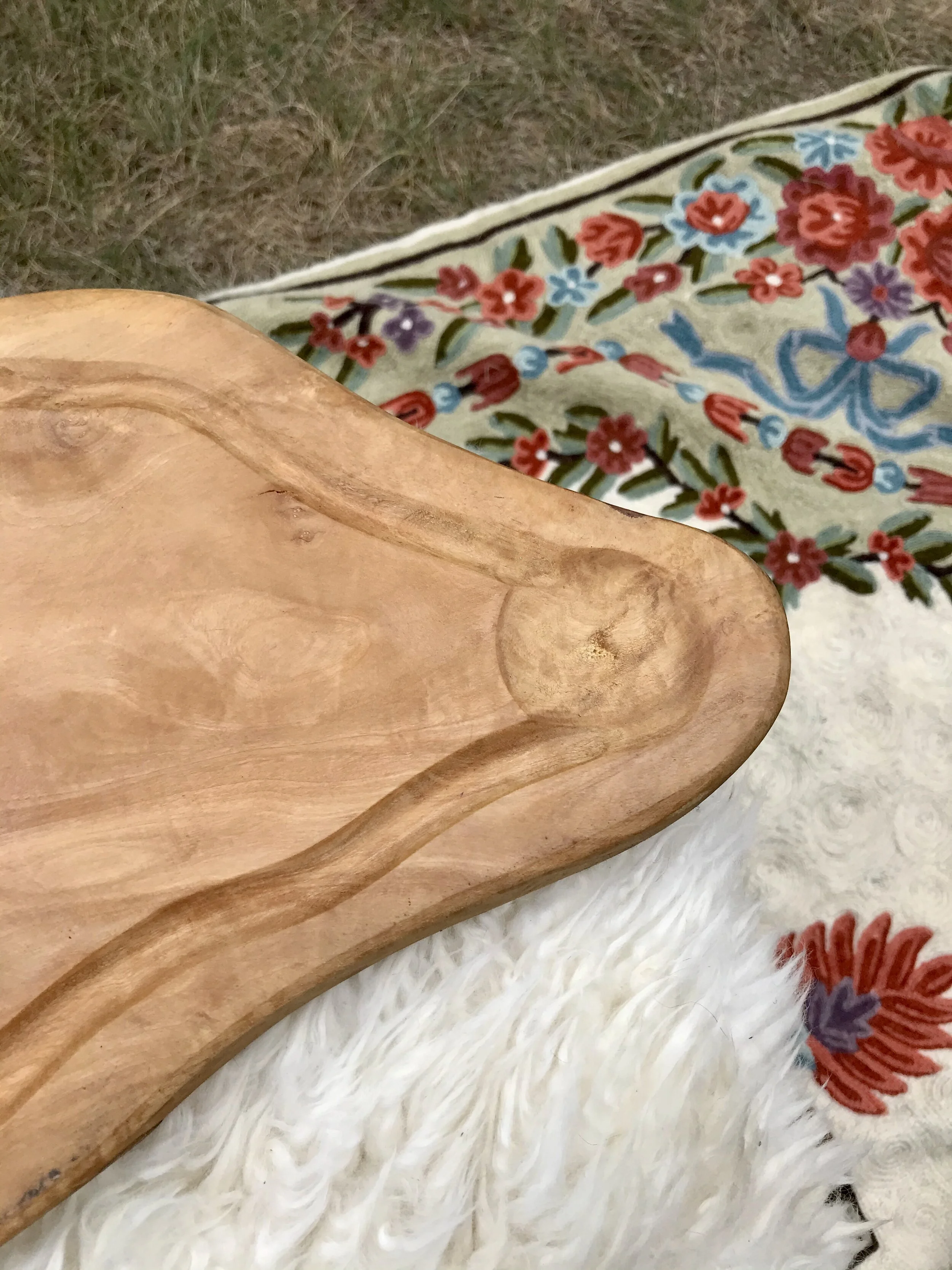 This piece hand-carved cutting board is completely unique. It would make an incredible server for a cheese or charcuterie spread at your next gathering.