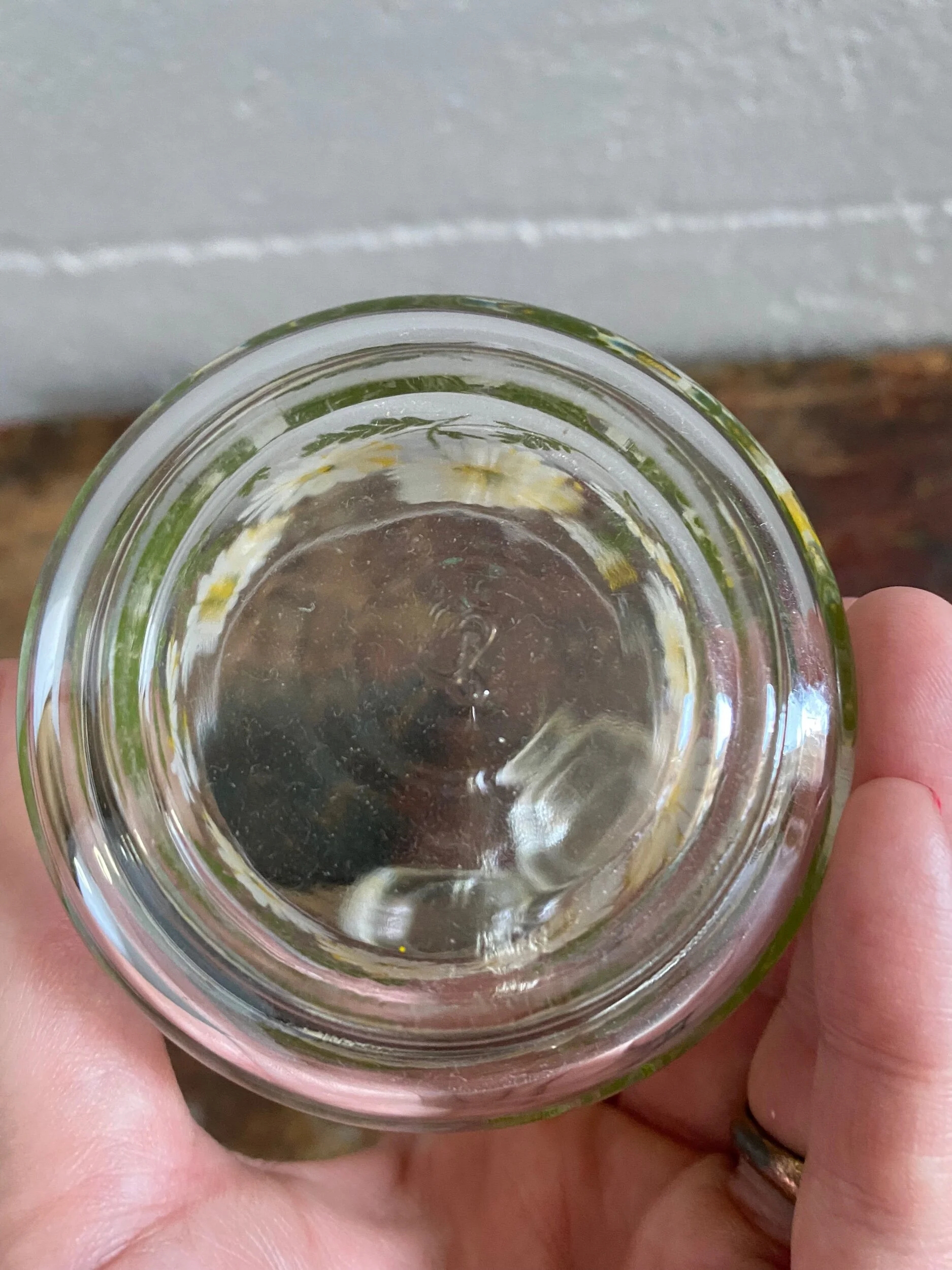 Perfect for a summer beverage! These midcentury beauties, made by Libbey, have a yellow, white, and green daisy pattern. The flowers and stems are in relief and have a nice texture (almost like an enamel). Mint vintage condition. Price includes set of 4.