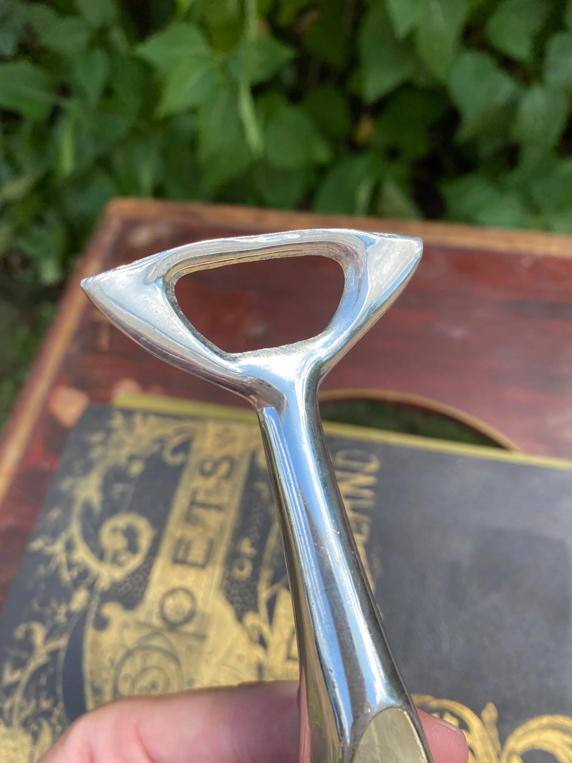 Midcentury dolphin-shaped metal bottle opener. Love! The end of the tail is a bottle opener. Flip the body over and you’ll find a tool to open a twist-off bottle cap. In excellent vintage condition and all shined up. This would make a great gift idea or addition to any home bar.