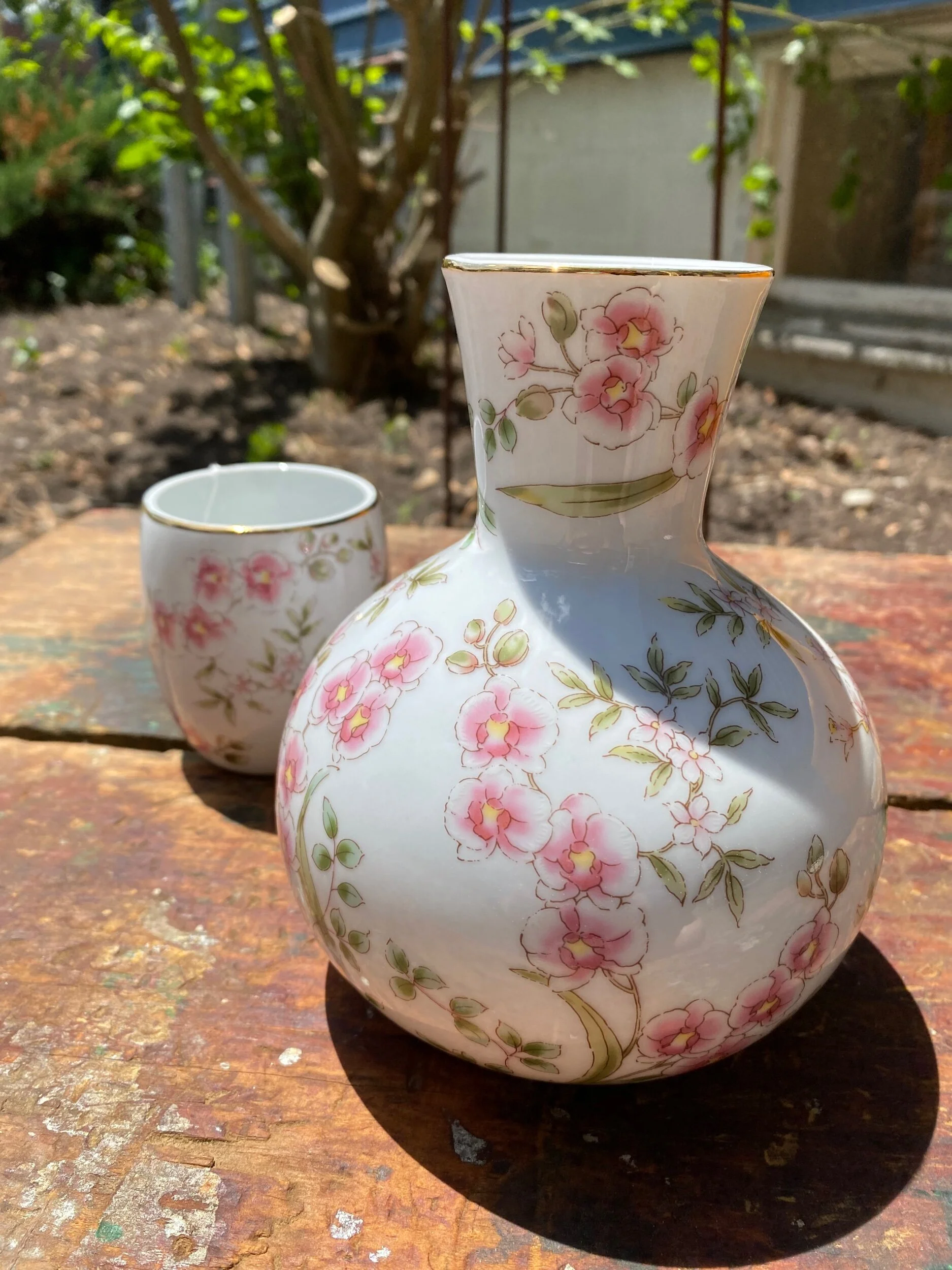 How sweet. Would make a nice addition to any bedside table! Floral design with pastel hues. This is in excellent vintage condition. Signed on bottom: Nantucket, Made in China.