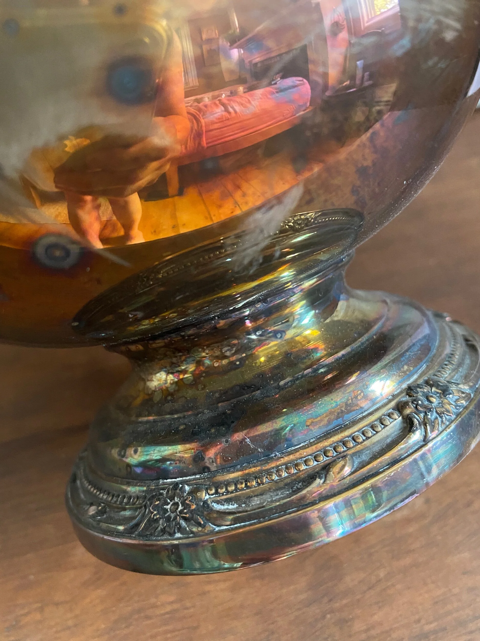 Beautiful silver-plated water pitcher by 1847 Rogers Brothers. We love the look of the patina on this piece but it could easily be polished-up if that is more your style. Ornate raised detail on the base, as shown, and an equally elegant design on the handle. This is in great vintage condition with minimal signs of wear.