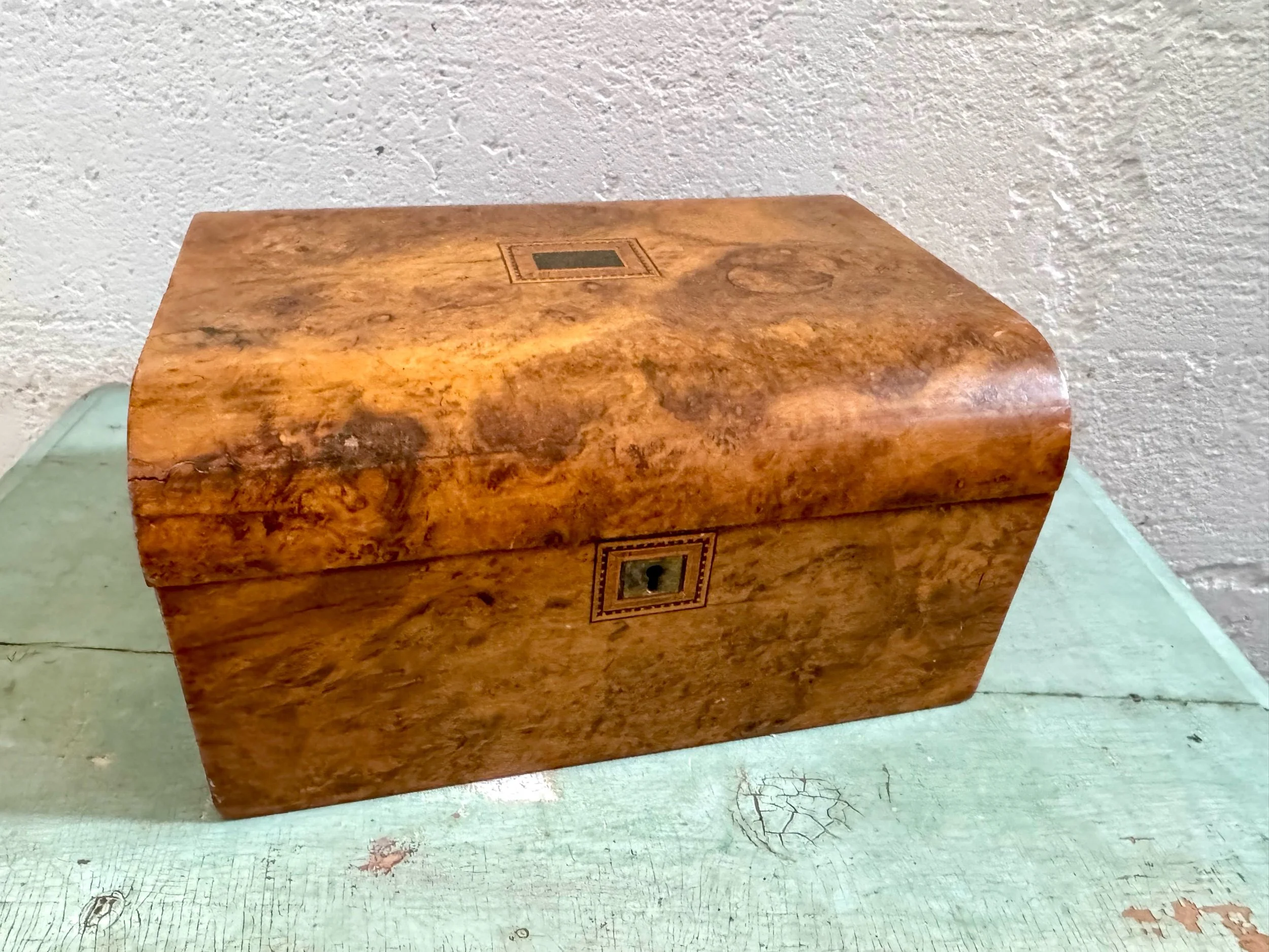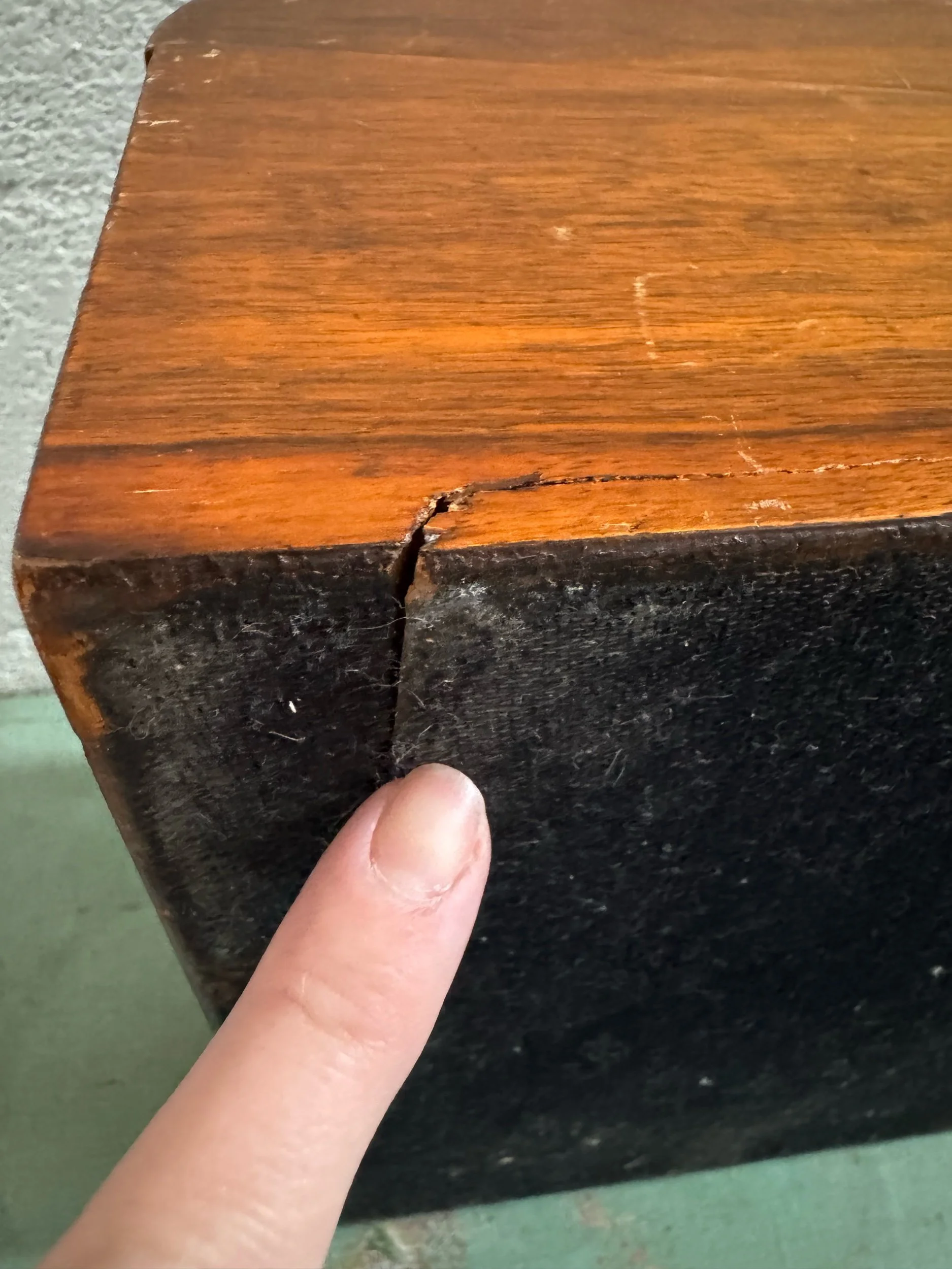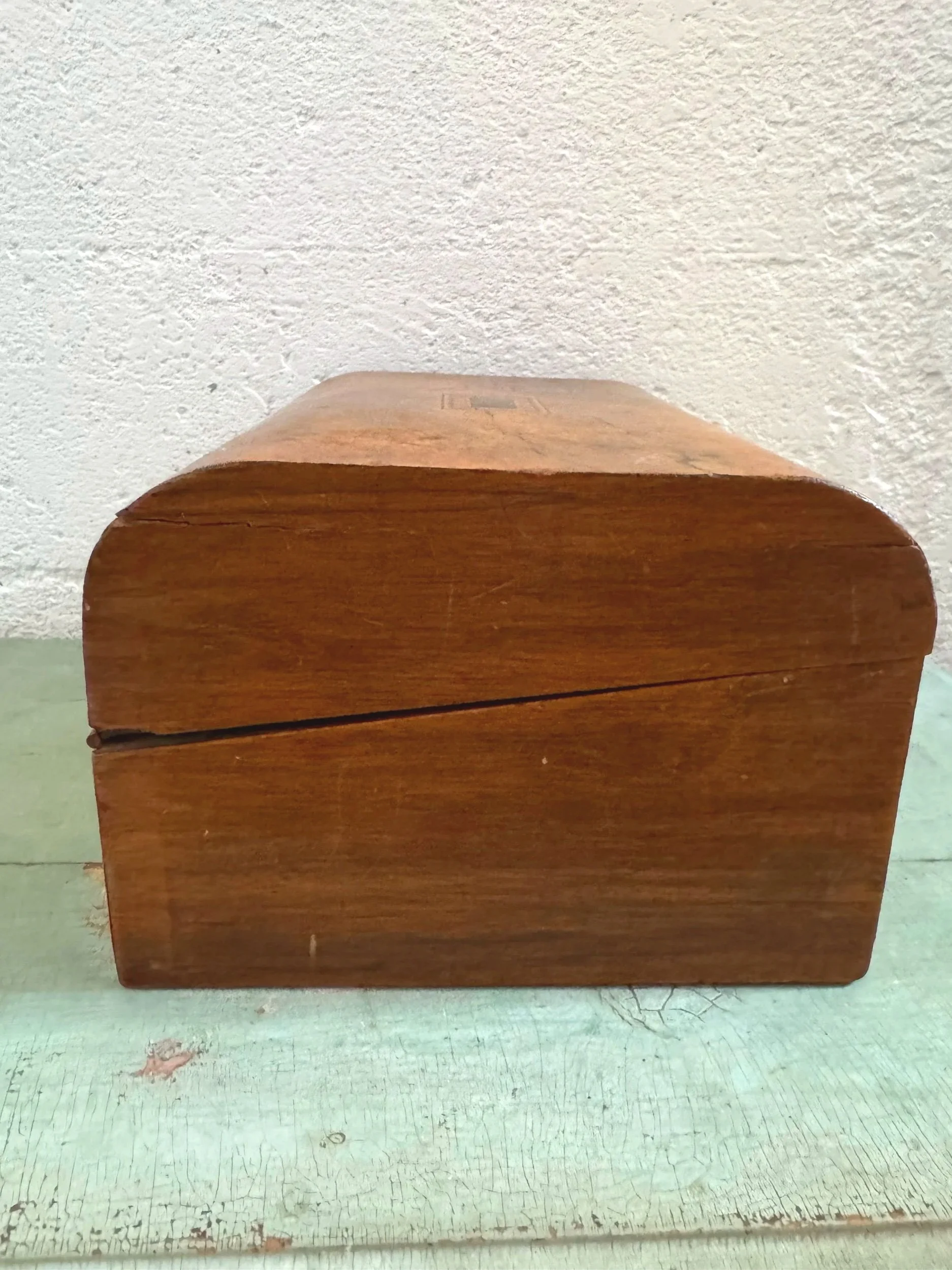 The sweetest tape measure in the likeness of a dress form. Made of delicate black plastic celluloid with gold accents. Retractable tape measure is made of fabric. No makers mark. Base twists open. Great condition, however missing the gold accent/cap on one shoulder. No signature but attributed to the 1960’s.